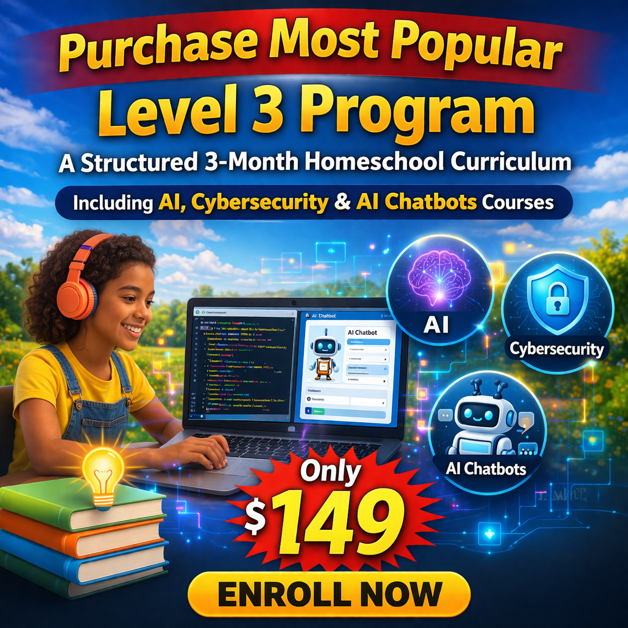 A fun, self-paced course where kids  learn and build their own AI cyberbots—anytime, anywhere.